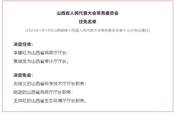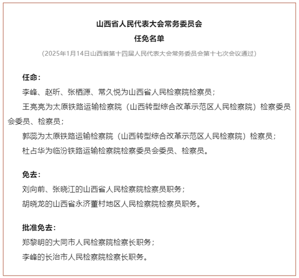 山西省人民代表大会常务委员会任免名单