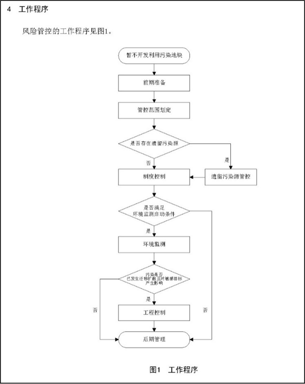 《指南》由前言、十二个章节及五个附录构成。章节分别为范围、规范性引用文件、术语和定义、工作程序、前期准备、管控范围划定、遗留污染源管控、制度控制、环境监测、工程控制、后期管理、方案编制。附录包括四个资料性附录一个规范性附录,分别为风险管控信息公告牌示例、环境空气监测指标推荐清单、环境监测内容、工程控制措施及相关参数、暂不开发利用污染地块风险管控工作方案大纲。