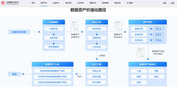 此外,作为一个完整的链条服务平台,山西数据交易中心与第三方专业机构合作,为登记方提供必要的数据合规性评估服务,以及后续的数据资产评估、资产入账和资产金融化等服务,以推动数据资产的合理分配和高效运用。