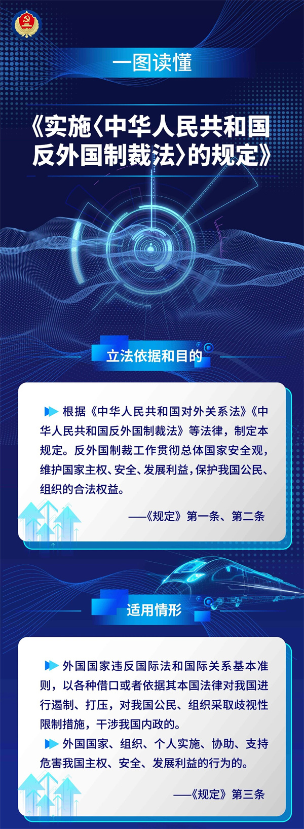 2025年3月23日国务院公布《实施〈中华人民共和国反外国制裁法〉的规定》,并于即日起施行。这是自《中华人民共和国反外国制裁法》发布以来首次公布的相关行政法规,全文共22条,进一步明确完善了反制措施、反制程序,对加强部门协同、强化措施执行具有重要意义。