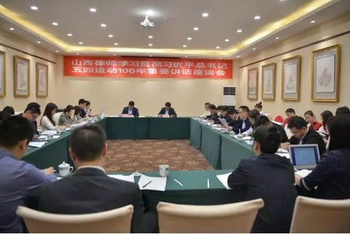 5月5日,为了学习贯彻习近平总书记2019年4月30日在纪念五四运动100周年大会上的重要讲话精神,山西省律师协会组织省城律师在三晋国际饭店召开了题为“山西律师学习贯彻习近平总书记在纪念五四运动100周年大会上的讲话”的座谈会。