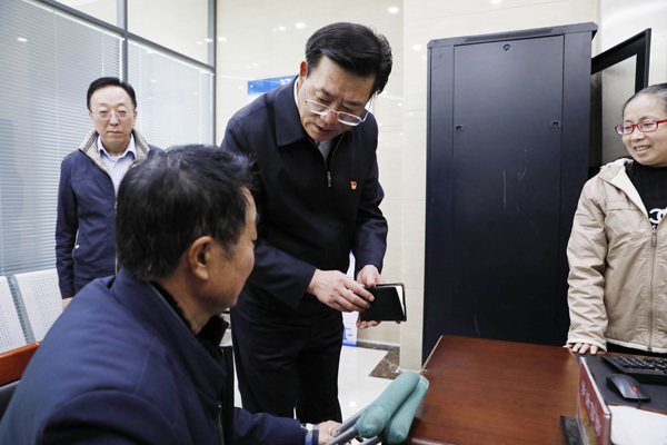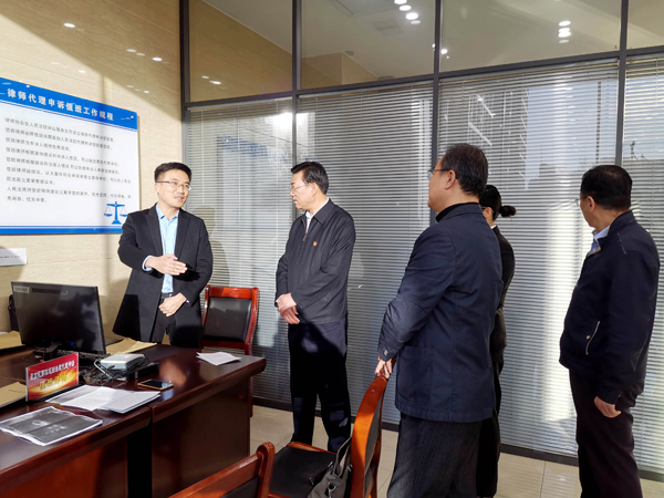 11月18日下午,省高级人民法院党组书记、院长孙洪山同志,省司法厅党委书记、厅长薛永辉同志来到省高级人民法院诉讼服务大厅调研、指导律师参与涉法涉诉信访维稳工作。