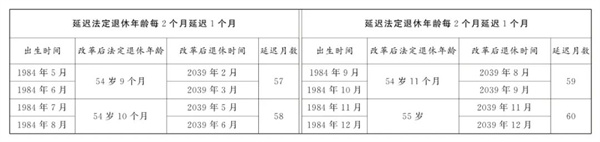 2.原法定退休年龄五十五周岁的女职工延迟法定退休年龄对照表