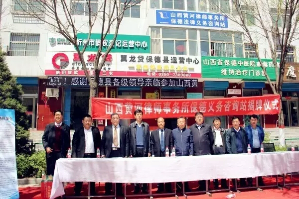 2017年4月23日上午11时,在保德县县城东关镇派出所对面举行法律义务咨询站揭牌仪式,黄河律师事务所主任李飞、保德县司法局局长白建平为法律义务咨询站揭牌,保德县政法委、法院、检察院、电视台相关领导,黄河律师事务所专家委员会专家张生强、刑事部部长董杰、业务二部部长赵秀芹,涉外、知识产权部部长薛宁,劳动争议、交通事故专业部部长贺刘峰,律师贺冰鸽等出席了本次活动。黄河律师事务所工会主席段凡生主持仪式,并介绍了本所各项优势以及设立法律义务咨询站的目的,是为了帮助保德县当地群众解决法律问题,提供优质、高效的法律服务。